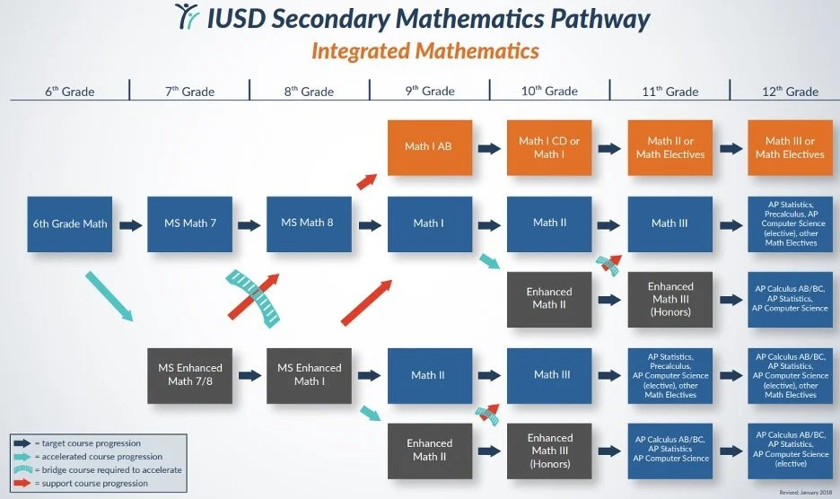 Fig. 2 Math course pathways currently available to students in the Irvine Unified School District (IUSD).